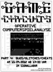 Die vierte Runde der operativen Computerspielanalyse (= sechstes RETRO-Usertreffen) beschäftigt sich mit Fehlern im Computerspiel. Fehler, die übersehen wurden, das Spiel zum Absturz bringen, es unmöglich zu spielen machen und die nachträglich und absichtlich eingefügt wurden, um neue Funktionen ins Spiel zu bringen.