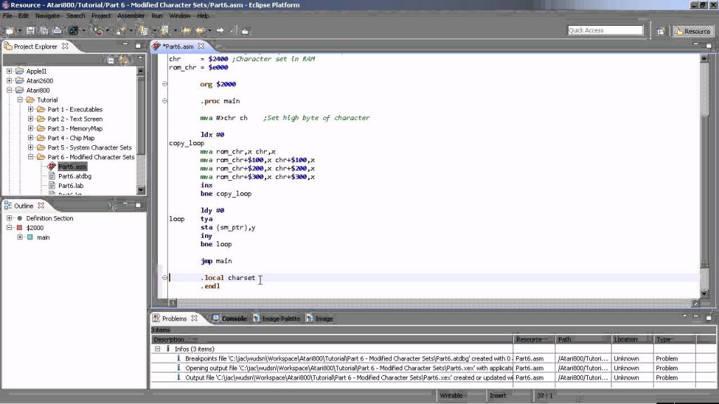 Programming the Atari XL/XE – Part 6 – Modified Character Sets Shahzad Sahaib vor 11 Jahren Programming the Atari XL/XE: Character set alignment. Copying character from ROM to RAM. Modifying individual characters with self-defined graphics. Hinweis: Das Video ist in englischer Sprache