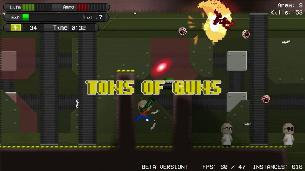 Rouge Stache ist ein mit überaus viel Pixelblut gesegnetes Spiel. Von der Gewalttätigkeit in diesem Space-Dungeon Exploration Spiel, wollen wir erst gar nicht anfangen. Da Gewalt, neben Sex, eine der klassischen Fliegenfänger sind, ist es uns gerne eine Zeile wert. Korrekterweise möchten wir natürlich auch noch darauf hinweisen, dass nicht jeder Oberlippenbartträger gewalttätig ist. It’s just a game!