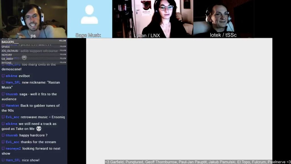 Video: Mystery Demoscene Theater 9000 s02e12 Shahzad Sahaib vor 8 Jahren Livestream chat about the demoscene, hosted by ps/TPOLM. Guests in this episode: Saga Musix/Nuance, Lycan/LNX & lotek style/tSCc. Show starts at 33:30.